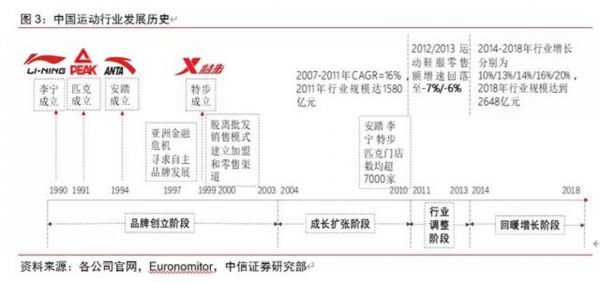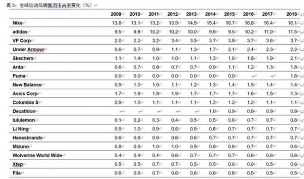 以上简单介绍了国内运动鞋服市场的发展过程,包括竞争的格局、不同品牌市场份额的演变。