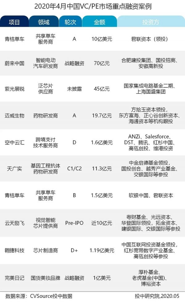 2020年4月,VC/PE募资市场颇有收获,基金完成募集规模高达131.86亿美元;