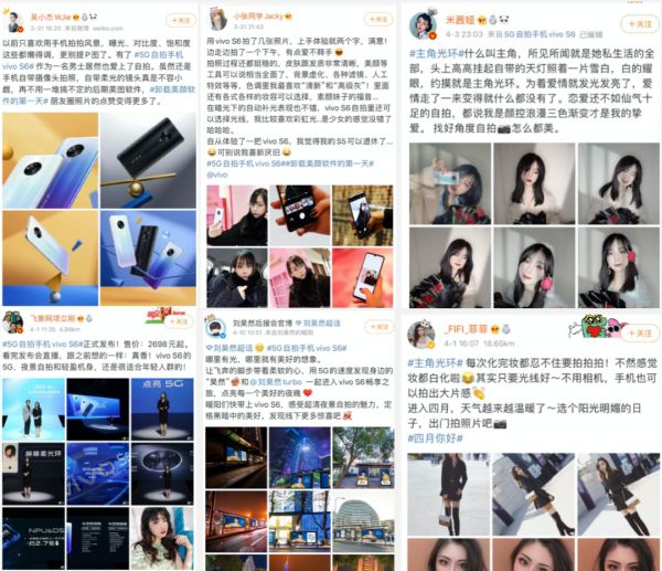 这里不得不提的是,要做好直播内容的二次传播,真正的互动舆论战场还是在微博等社交媒体上。消费者在直播间可能会冲动消费,但也可能会跳出二次搜索信息,尤其是手机3C等客单价较大的产品,这时候品牌信息的引导就非常重要了,评测等多方位的信息会产生助攻效果。vivo S6在发布后,全站联动KOL就超过630位,推出了1.89亿的总阅读量,才能保证直播结束后的全域热度。