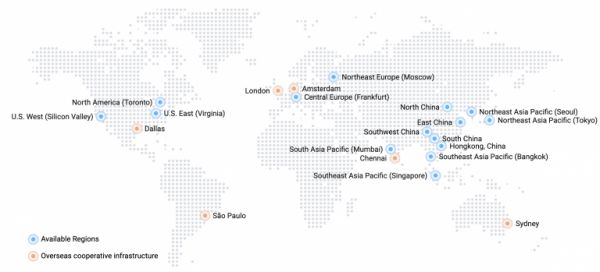 阿里云数据中心覆盖情况,图片和数据来源:阿里云网站