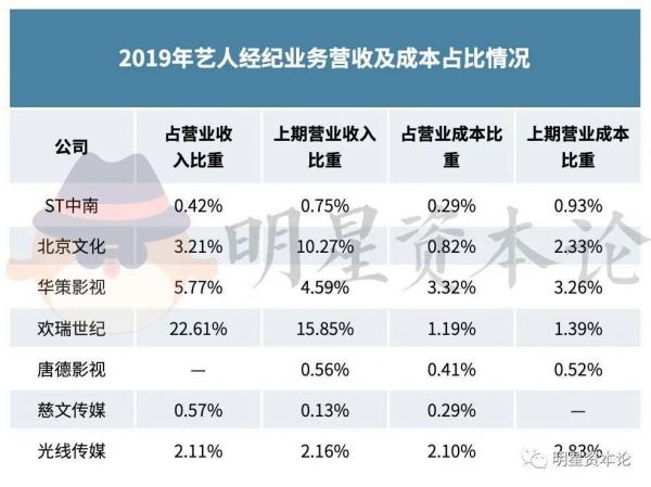 我们通过研究2019年涵盖艺人经纪业务的上市公司财报后发现,行业目前主要面临着以下4个现象。