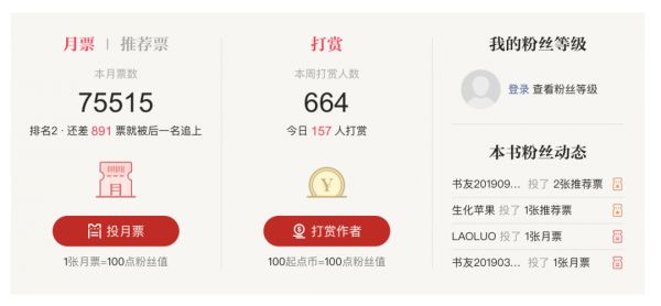 一边是巨大的内容缺口让读者嗷嗷待哺,一边是活不下去的作者难以维持生计。作家福利制度便应运而生。当全勤奖、勤奋写作奖、月票奖直至之后的“打赏”功能全面上线后,作者的基础酬劳得以保障,随即涌现出了大量优秀网络文学作品,推动行业发展到了新的高度。
