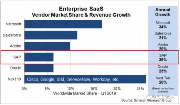 在Synergy Research 2019年6月发布的企业级SaaS市场调研中还有几个有意思的发现: