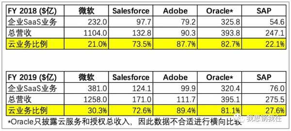 所以一条良性的传统软件公司的云转型路线浮出水面,只是不同公司正处于各自的转型阶段,SaaS业务占各家整体营收比例差异也十分明显。