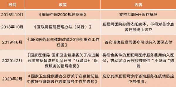 高增速的一个主要原因是政策的扶持,如果我们从2015平安好医生诞生的时间作为起始,可以梳理如下互联网医疗典型政策汇总: