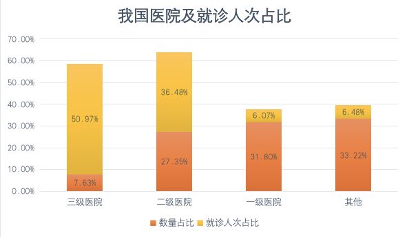高增速原因其二,是接诊压力的问题。优质医疗机构集中在省会城市和发达地区,仅占全国医院数量7.63%的三甲医院便接待了超过50%的问诊患者,无论是病患还是医院对于互联网医疗的需求都是迫切的。