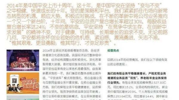 上图:2014年平安年报董事长致辞(来自平安年报)