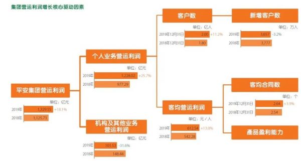 平安很少公开讲“以客户为中心”,却在每年的年报中着重介绍客户经营成果。常说文如其人,年报对于上市公司同此理。平安在年报中每年都会披露其客户数量,并从2016年开始为客户画像,并将客户作为集团利润增长核心分析驱动因素。年报中的篇章结构和片言只语,足以说明平安以客户为中心已深入骨髓,以客户经营作为其生存之本。