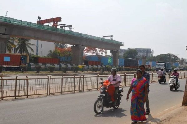 电子城消化了成千上万软件工程师的就业,全球闻名的Infosys和Wipro园区都位于此处。现代化的软件园区和周围的杂乱无章形成了鲜明的冲突。从Bommasandra下高速,满载货物的卡车接连驶过,噪声挑衅着每一个路人的耳膜,让人无暇去顾忌飞扬的尘土。路边的高架桥体断断续续,缓慢的施工速度显然跟不上班加罗尔想要把地铁修到这里的野心。