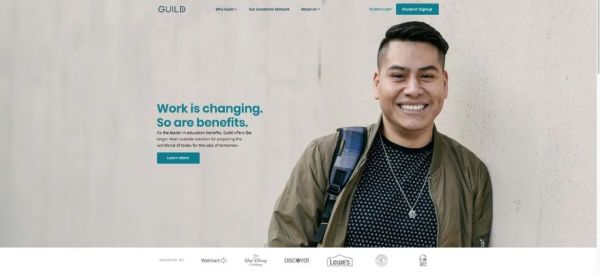 Guild Education提供终生学习平台。同时与高校合作,提供学位课程,全程为学院提供服务,帮助他们完成学业,提高自身以及就业能力。