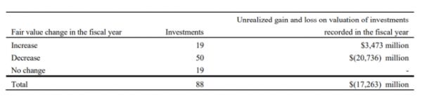 由于软银集团将愿景基金纳入为旗下一个业务板块,因而在软银的年度财务报告中,能够更加清晰直观地了解到愿景基金在过去一年的运作情况。