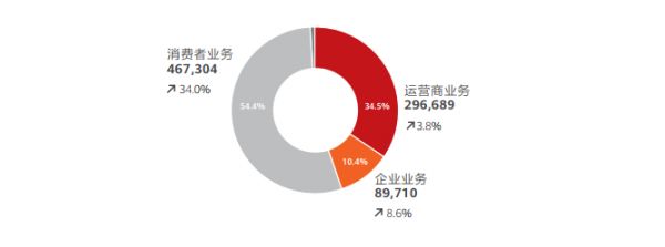 在2019年华为年报中,以手机等终端为主的消费者业务是这一年的增长亮点,收入达到4673亿元,同比增长34%,总计为华为贡献收入超过54%,成为华为营收的第一主力军。