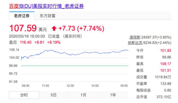 数据提升了市场对百度2020年Q1财报的信心。就在上周五,李彦宏在百度APP内直播首秀后,百度市值一夜暴涨近17亿美元,约合人民币120亿元。