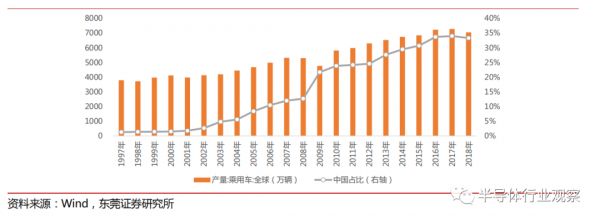 2018 年中国占据全球乘用车产量的33%(图源:东莞证券研究所)