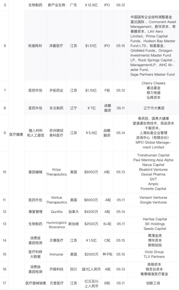 交易金额:近7日交易数据表明,本周期国内市场融资分布呈明确阶梯状,PE阶段和战略融资阶段交易规模占总交易规模的45.14%,IPO阶段交易规模占总交易规模的27.43%,后期市场医疗健康领域最为活跃。其中,医疗外包领域和耗材市场持续获得资本加码。