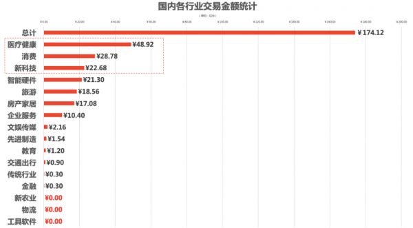 交易数量:该7日交易数据表明:排名前三的一级行业分别是:消费、医疗健康、企业服务与新科技,其中Top3行业交易数量占总交易数量的40.63%。